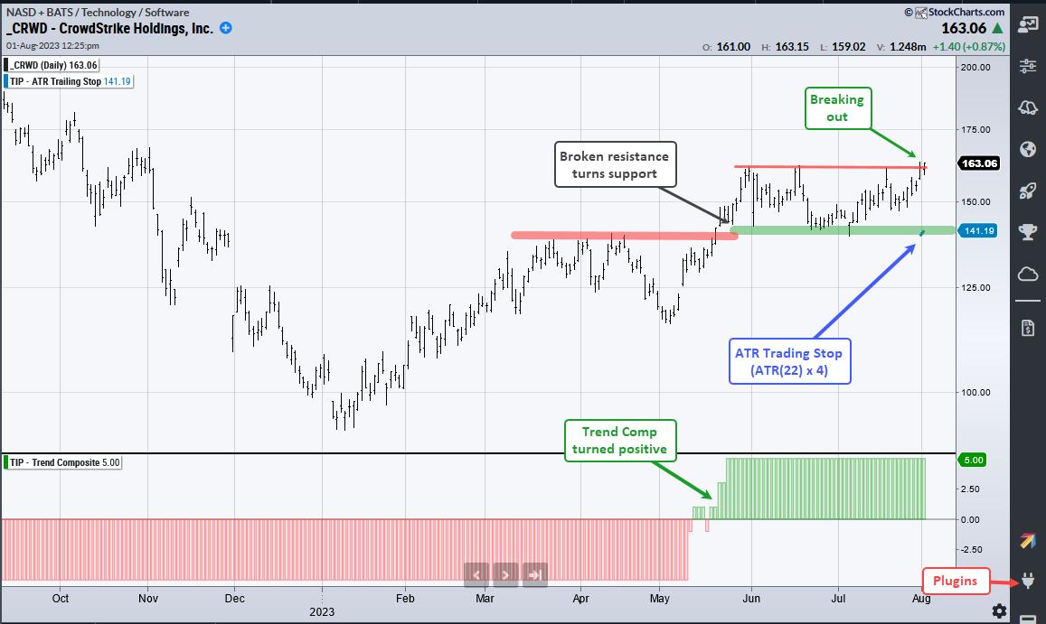 The ATR Trailing Stop, Trend Composite, Momentum Composite and eight other indicators are part of the TrendInvestorPro Indicator Edge Plugin for StockCharts ACP. Click here to take your analysis process to the next level.