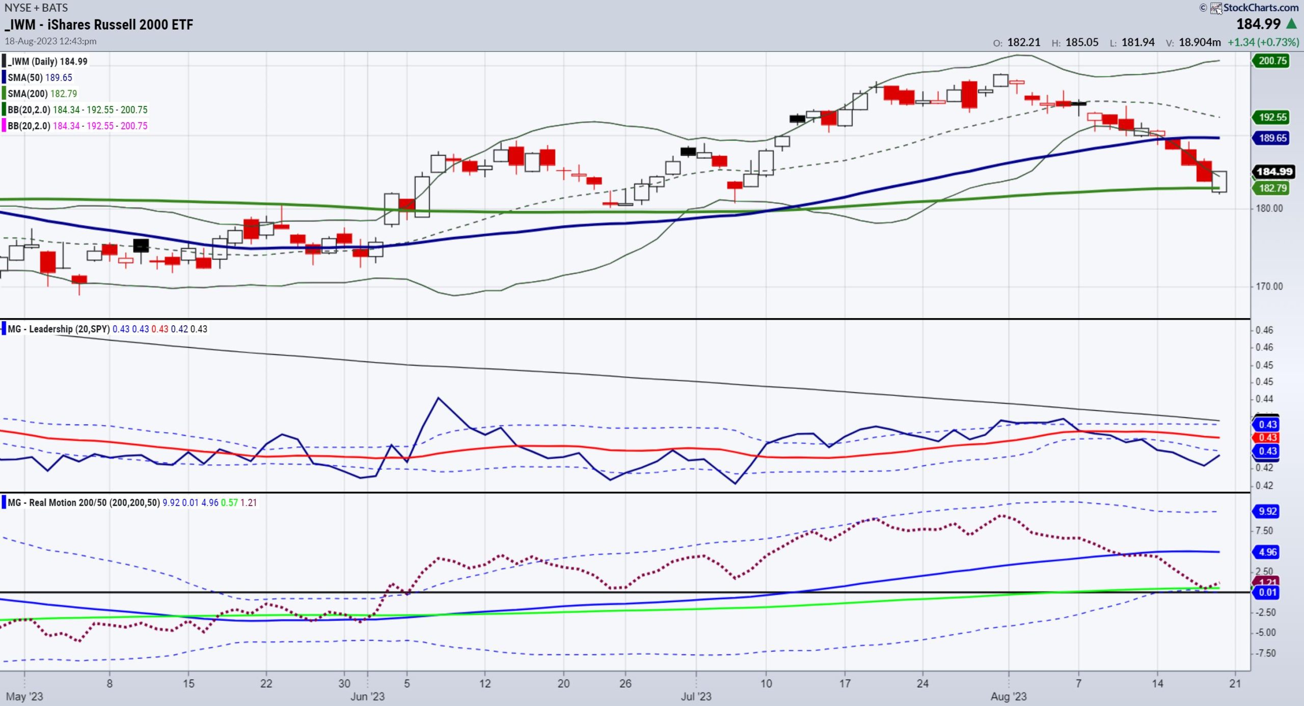 S&P 500 (SPY): 437 is the July 6-month calendar range low, will look for a return above or a trip to 420.Russell 2000 (IWM): 181.94 the low of the week is key; 180.72 the 6-momth calendar range low.Dow (DIA): Relative strength here-a return over 346 positive.Nasdaq (QQQ): 363 the July 6 month CRL, BUT held a key weekly MA at 357.Regional Banks (KRE): Outperformer, as all this did was fall to the July range high at 44.40.Semiconductors (SMH): 145 a weekly MA support level with 150 key resistance.Transportation (IYT): Landed on the July 6-month calendar range low. If holds, a positive.Biotechnology (IBB): Compression between 123-130.Retail (XRT): 62.80 the July 6-month calendar range low; this held the 200-DMA as well.