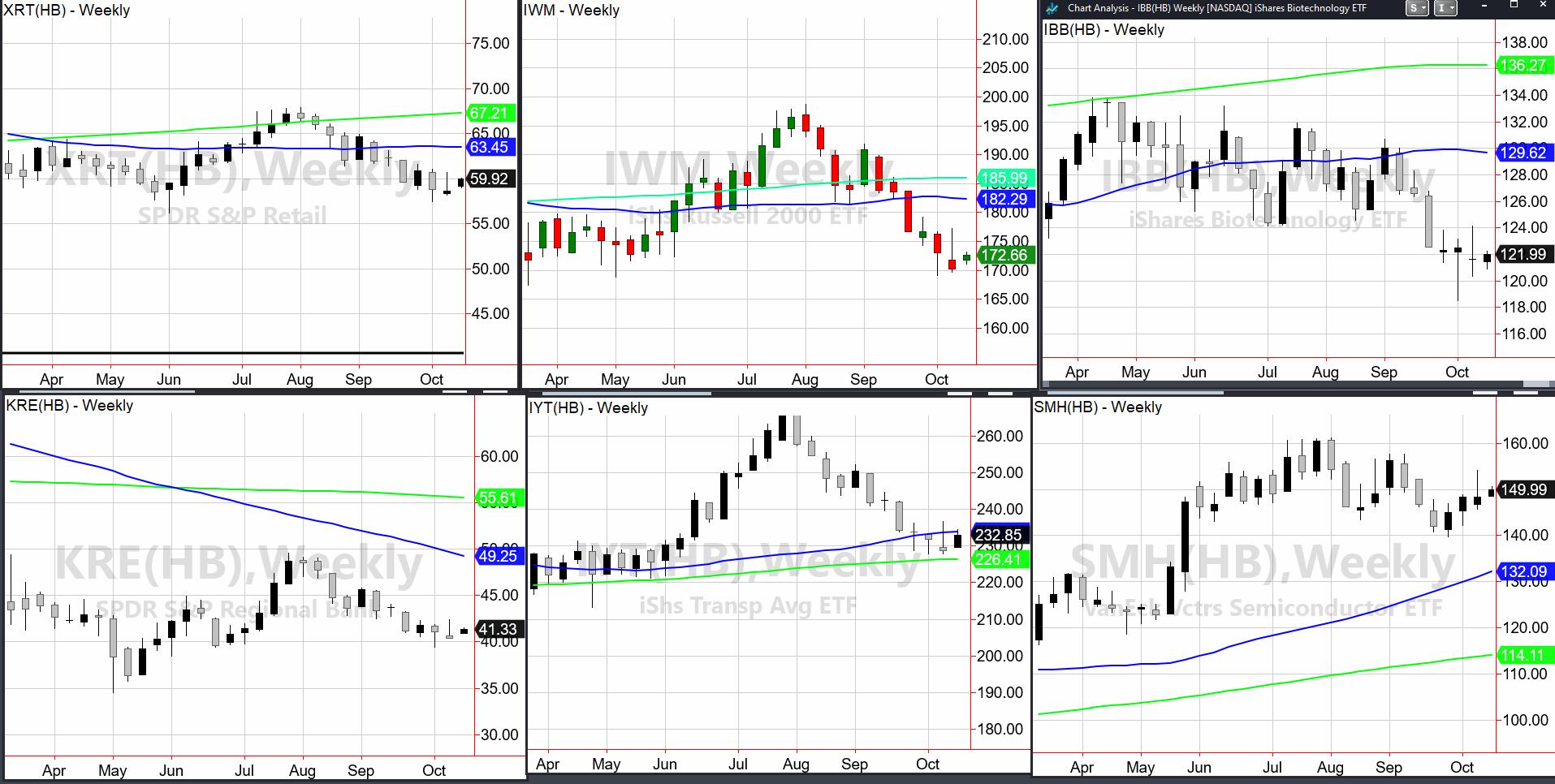 Transportation (IYT) had a great rally from June until late August. But since then, it’s sat at April, May, June lows, and now again at those same lows since late September. 220-235 a good range to watch.
