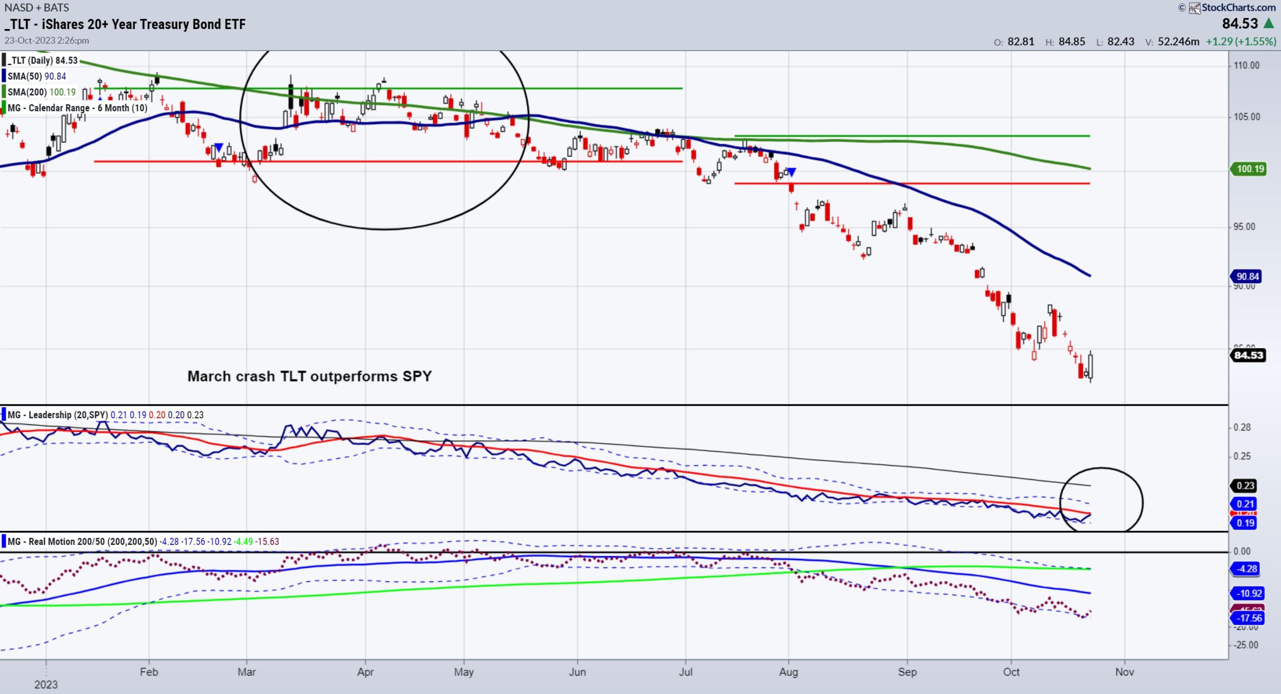 Back in March, when we had the bank crisis flash crash, bonds signaled a flight to safety by outperforming the SPY starting March 7.