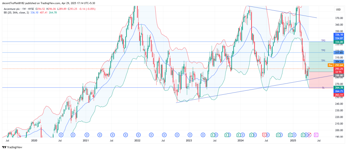 Long ACN: bullish reversal from ascending triangle support with strong AI catalyst and MA confirmation