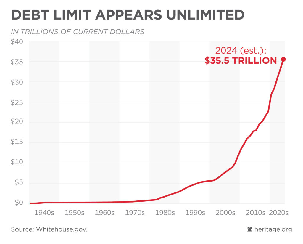 Reducing the federal deficit by $2.8 trillion over the next decade sounds impressive to us mere fiscal mortals. But it is at best a drop in the bucket when the national debt is, even under charitable assumptions, projected to grow to $55.2 trillion over the next ten years. Retired Admiral Michael Mullen, then the Chairman of the Joint Chiefs of Staff, warned of our national debt’s effect of crippling our nation’s capabilities, making us less safe. His warning came in 2010, when the federal debt was a mere $13.5 trillion and the federal deficit was a mere $1.29 trillion.