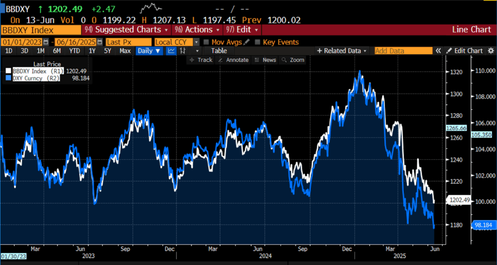 The recent weakness in the US dollar has reignited the debate over the durability of the dollar’s dominance in global finance. Over the first half of the year, the Bloomberg Dollar Index has fallen nearly 8.5 percent, marking one of the sharpest declines since the mid-1980s. Yet while this drawdown has fueled widespread commentary about de-dollarization, it is important to distinguish between dollar weakness — a familiar, cyclical phenomenon — and the far more consequential and complex issue of de-dollarization, which concerns the dollar’s standing as the world’s primary reserve currency and medium of international exchange.