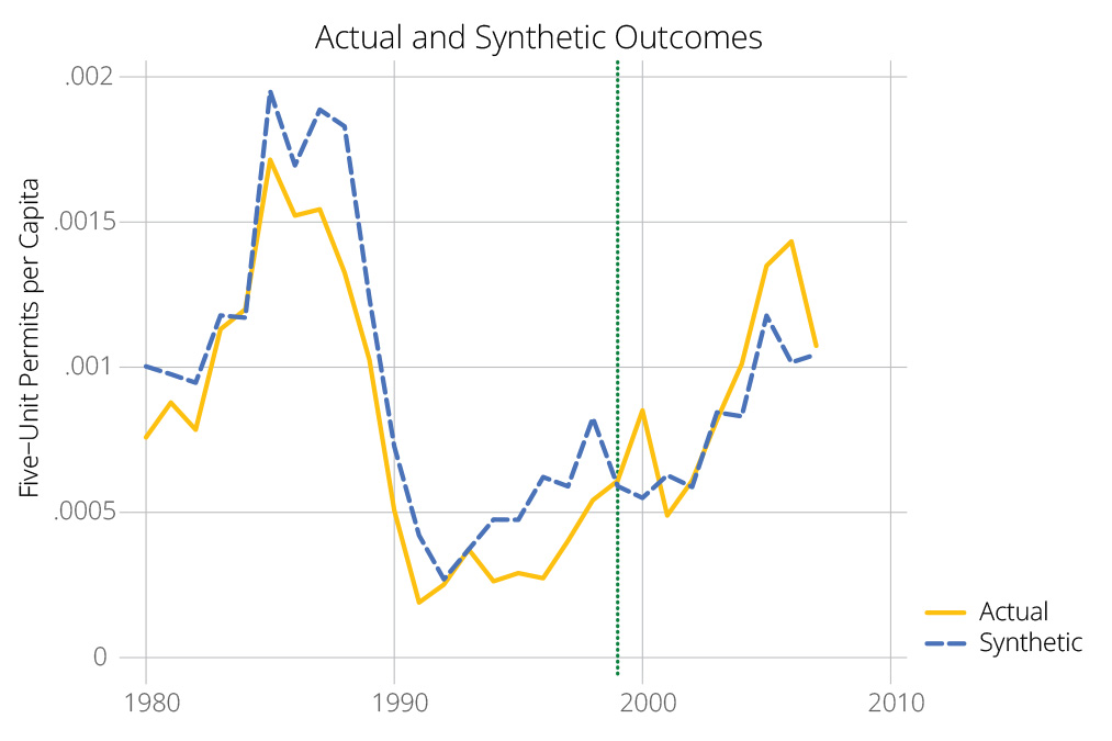 Figure 6: Synthetic Control Analysis of New Jersey Five-Unit Building Permits