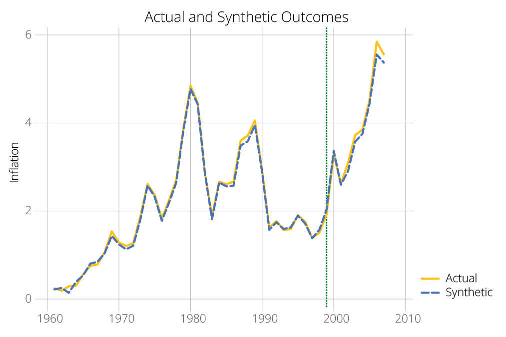 Figure 7: Synthetic Control Analysis of New Jersey Inflation