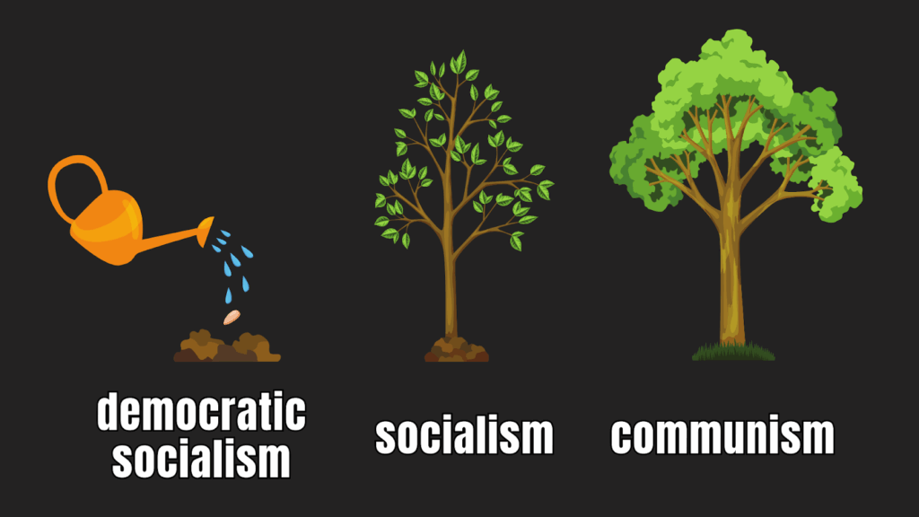 So what really separates democratic socialism from Marx’s communism? In short, it’s the same plant — just at different stages of growth. I created this diagram to help envision it: democratic socialism is the seed, socialism is the growing plant, and communism is the full-grown tree, where the state controls every part of economic life and, eventually, people’s choices.