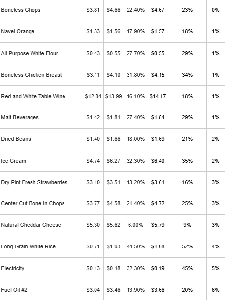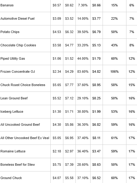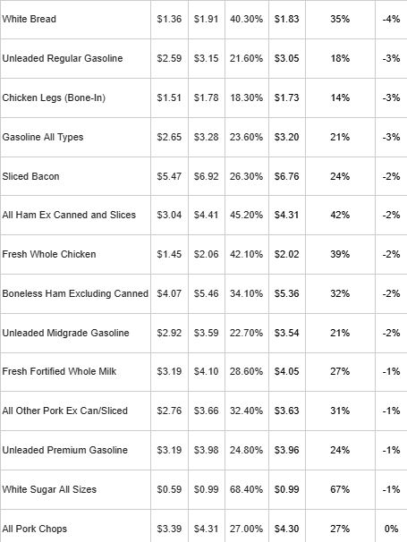 There are limited offsets. Staple carbohydrates such as pasta and potatoes are up only about 10 percent since 2019 and are cheaper than a year ago. Gasoline prices have risen less than 25 percent since 2019 and have declined modestly over the past year. But these improvements are insufficient to materially offset higher costs elsewhere in household budgets.