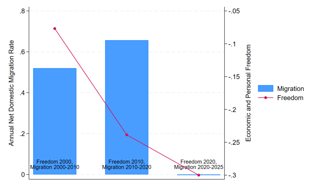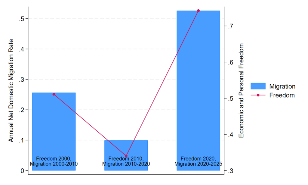 More sophisticated evidence from our study suggests that both economic and personal freedom independently drive in-migration.